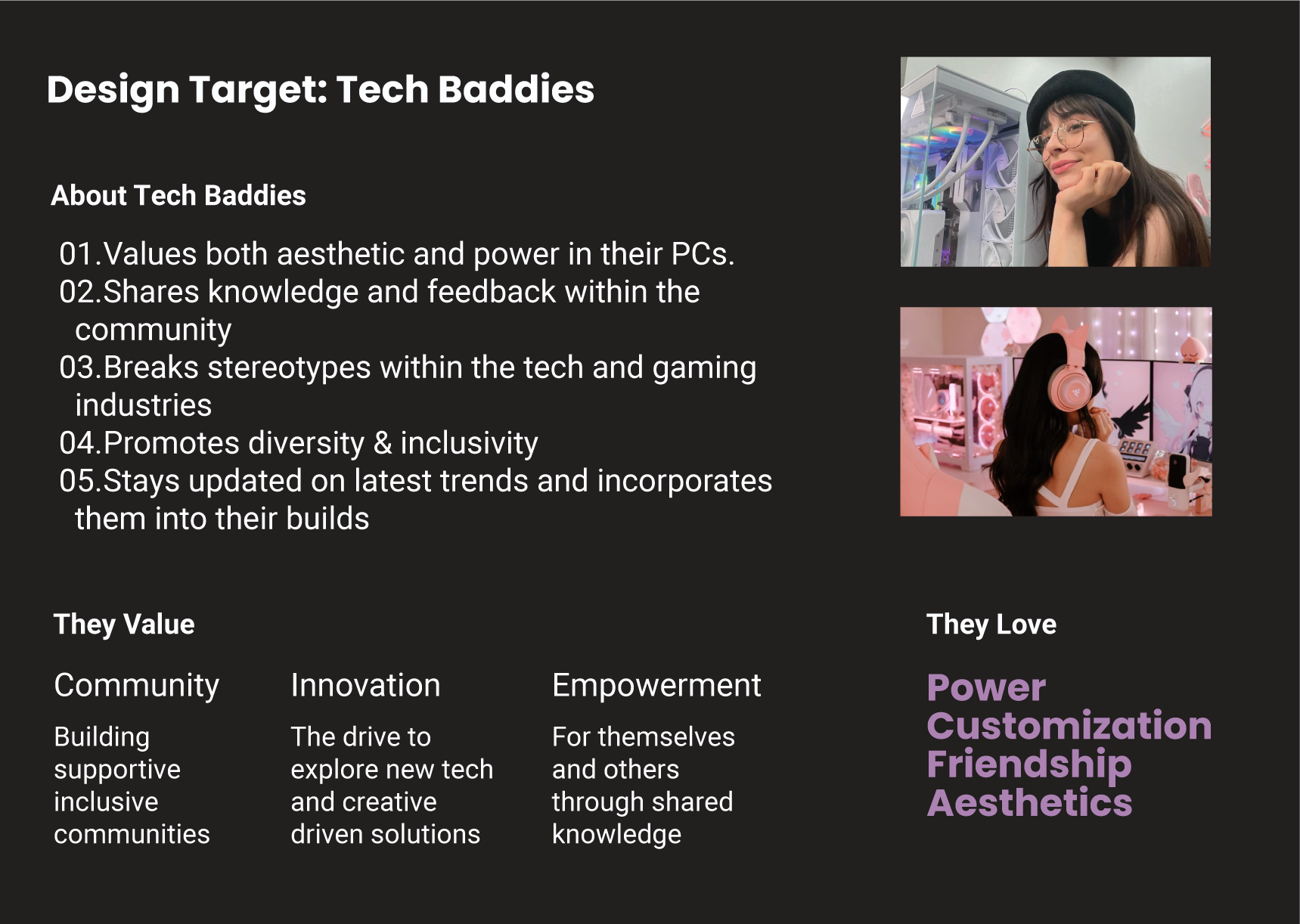 BAD/DIYS is more than just a tech company—it’s a community. A place where everyone can feel included, supported, and empowered to explore the tech and gaming universe. The vision is to create an inclusive tech landscape where everyone, regardless of their background, can thrive and innovate and build their own computers. The task was to develop a beginner-friendly, inclusive DIY PC building brand that demystifies the PC assembly process for people from underrepresented groups, integrates aesthetic appeal, fosters a supportive community, ensures product accessibility, and promotes sustainability in the tech world.