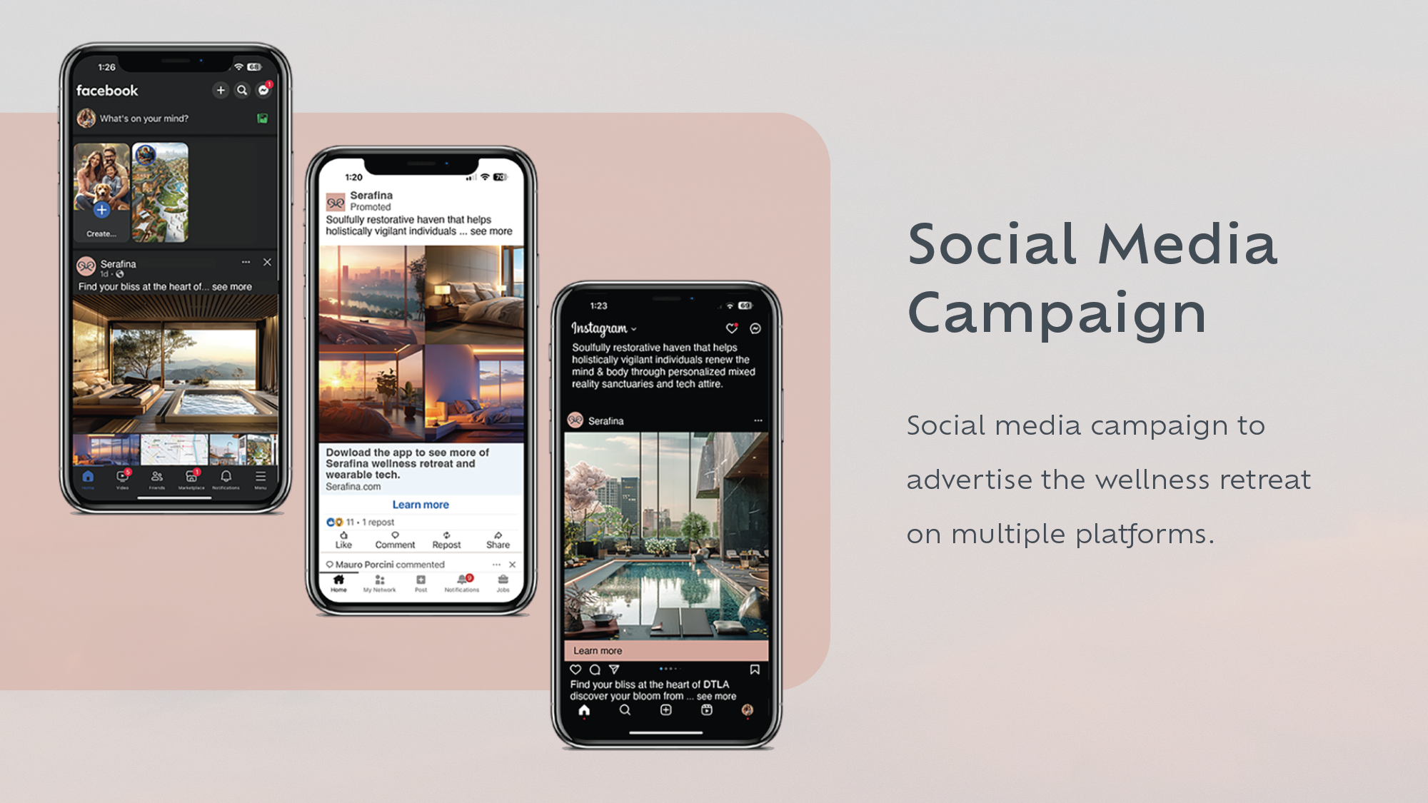 In concluding the project, each team member contributed to various brand applications and touchpoints to create an immersive experience for Serafina's consumers.